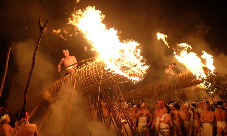 One of the best things about Japan: the festivals. Great food, fun people, and centuries-old rituals, however weird they might seem. In this case, the Daizenji Oniyo Fire Festival, six giant torches are put on fire by men in loincloths. In January. Did not envy them.