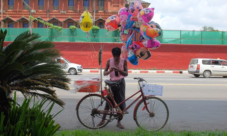 I just came back from Japan for my first visa run, and talking to friends who were curious about Burma, I always said that while everything seems old, it makes for really interesting pictures. The wall in the background is very typical of Yangon. Moldy, but great textures. This is also the only photo where the subjects aren’t wearing longyis, the traditional sarong-like garment worn by most people.
